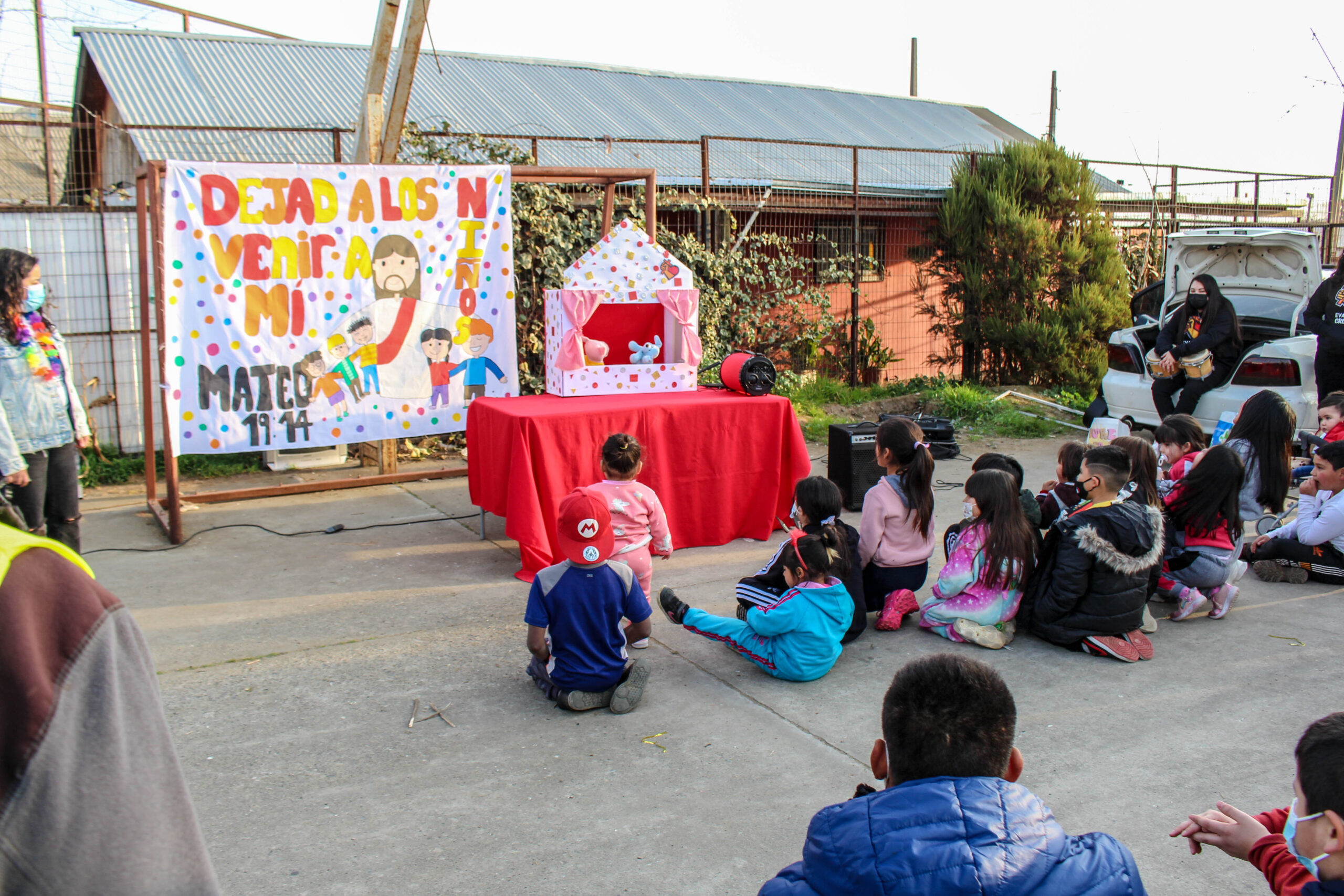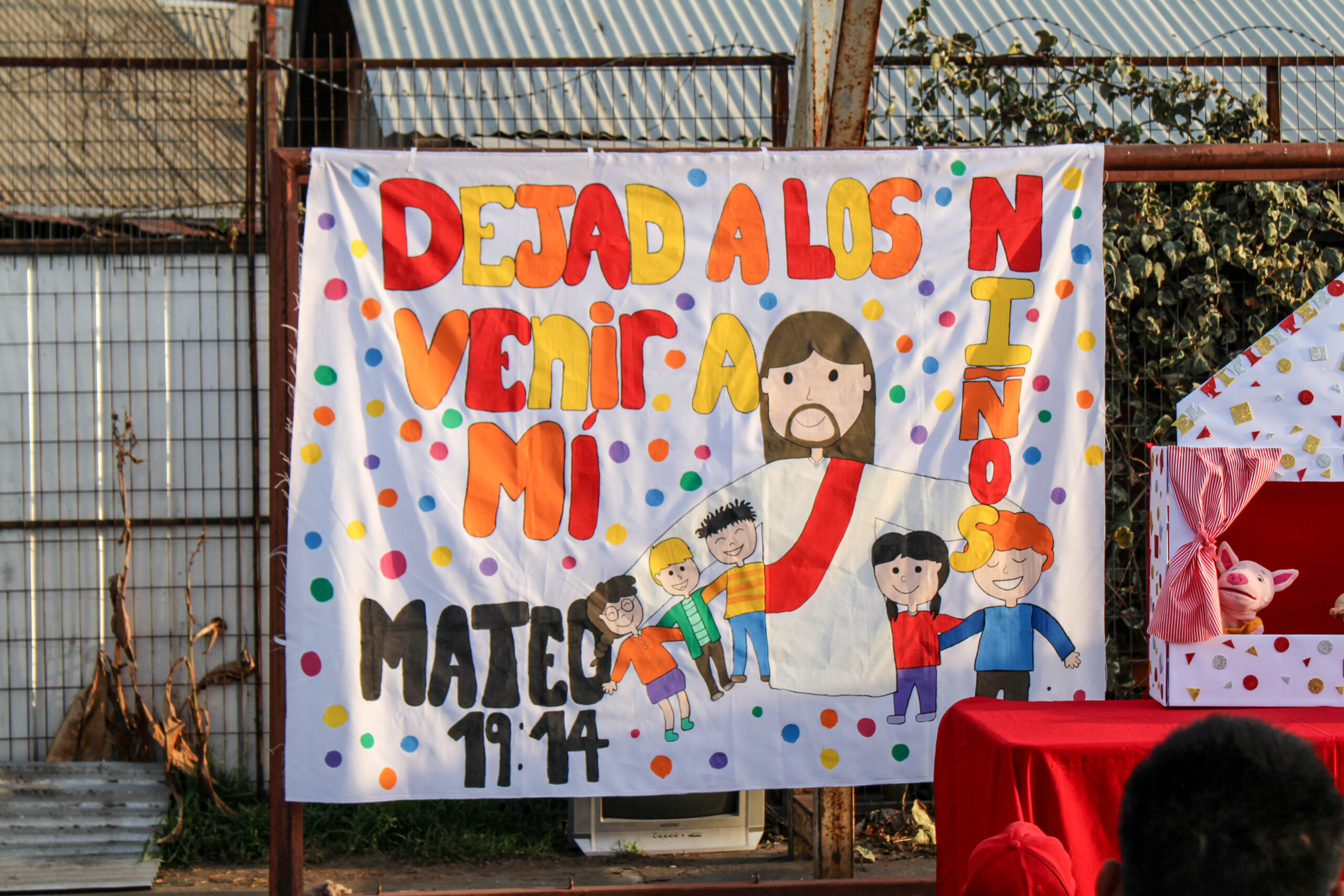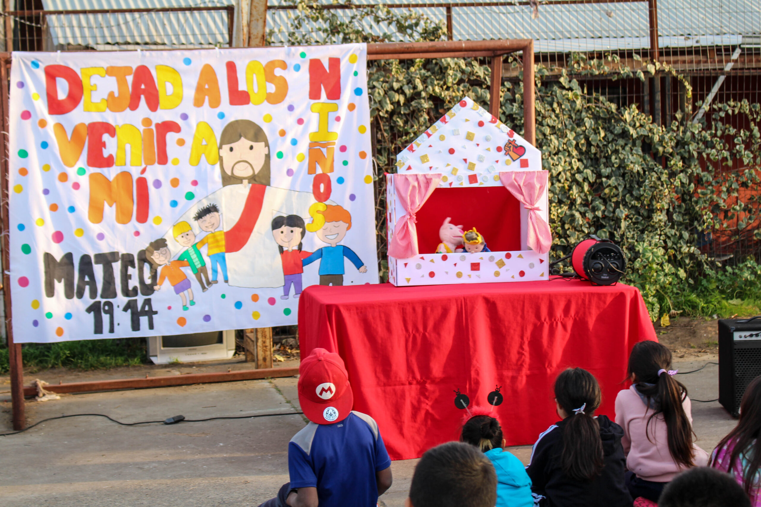 En aquel lugar pudimos realizar distintas actividades como el congelao’ y canta la canción. Luego tuvimos una pequeña reflexión con títeres, bailamos con la alabanza “Cambiaré mi tristeza” y terminamos orando por todos los niños que nos acompañaron.