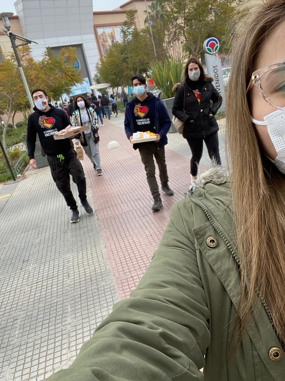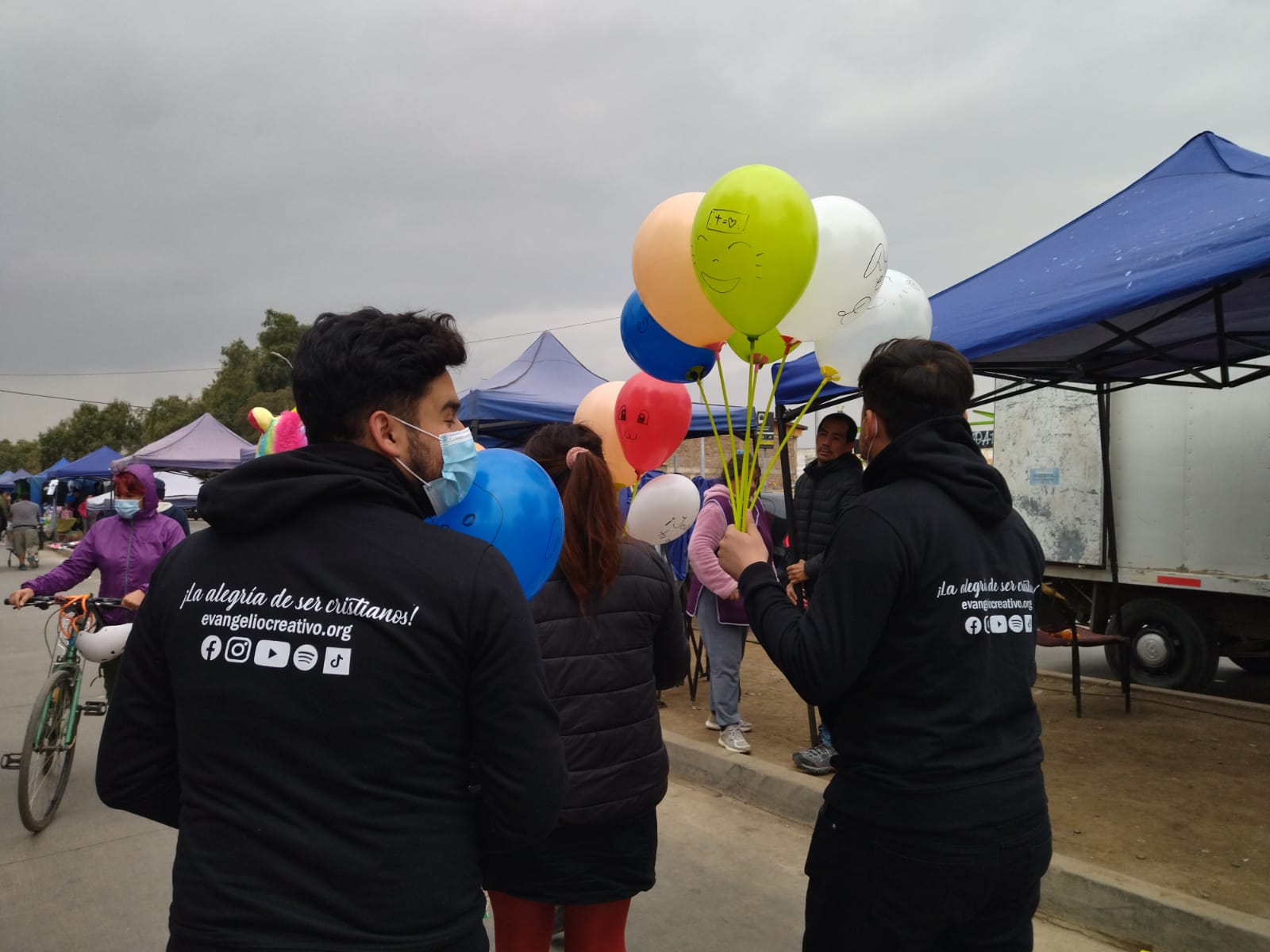 Fue así que los días viernes, sábado y domingo, un grupo de hermanos regaló amor en la comuna de Maipú cubriendo diversas plazas, pasando por el Metro, el Mall y avenidas principales entregando dulces, globos y Palabra de Dios. Si bien algunas personas no creían que todo era totalmente gratis, finalmente recibieron el regalito del Señor con la cara llena de risa. ¡Qué bonito!