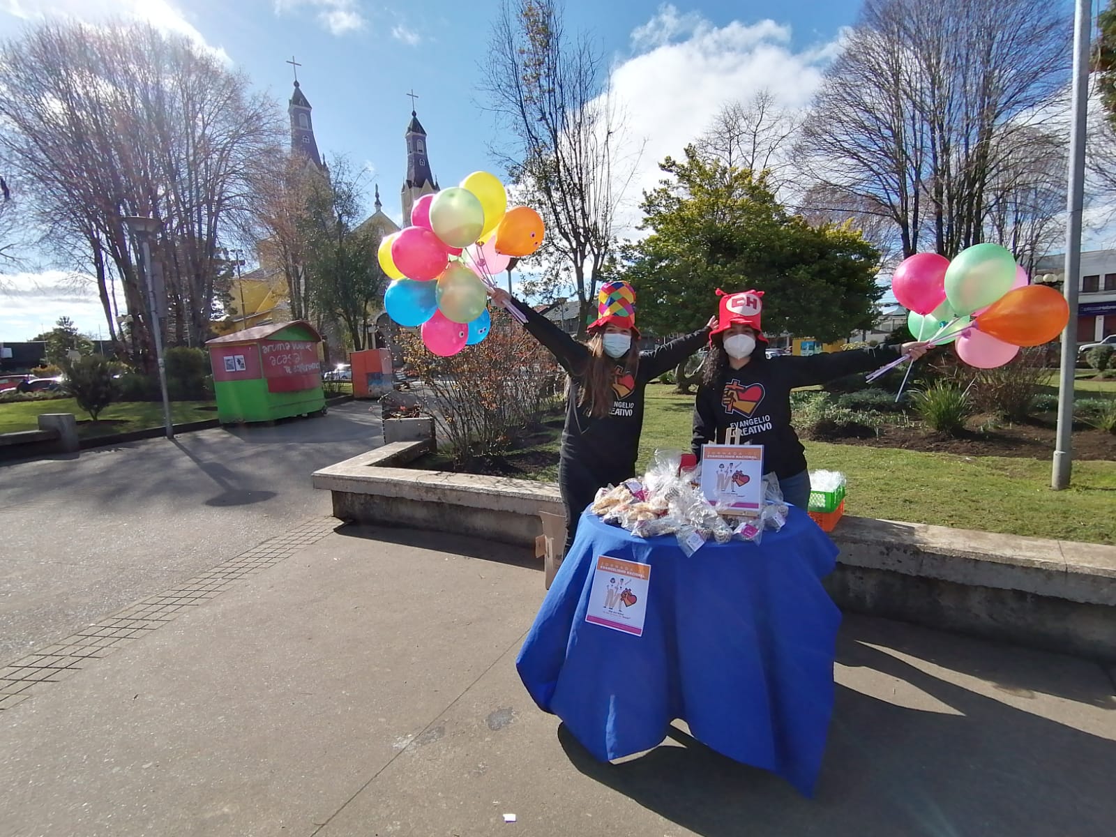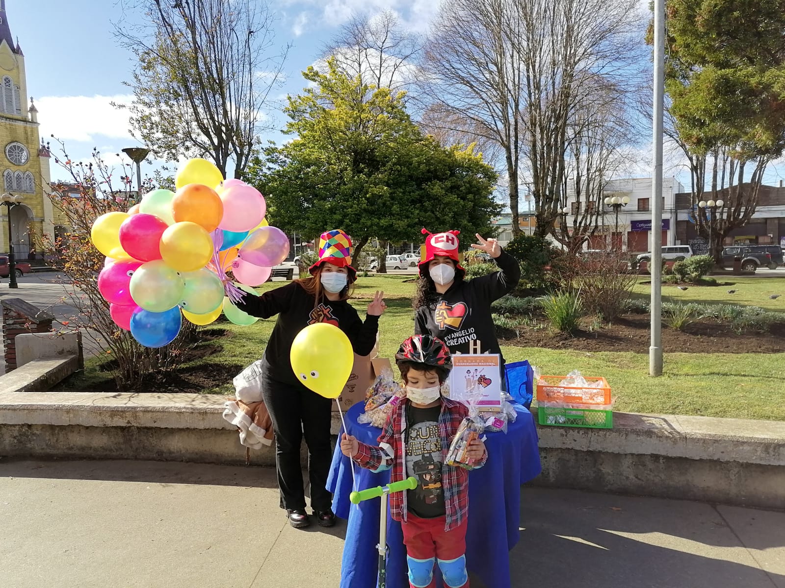 Y claro, no podía faltar el team Chilote, donde la Rebe y la Kathy entregaron dulces, pastelitos, globos, muchos globos, y también Palabra de Dios a las personas que se hicieron presentes en la Plaza de Castro, compartiendo también con muchas familias. ¡Qué bendición!