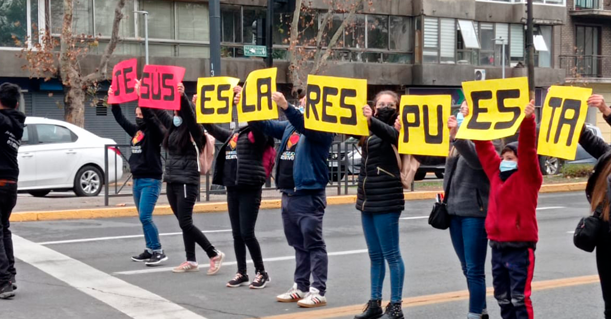 Y bueno, con esa melodía tan bella, ¿quién no se motiva? Tomamos los carteles y los levantamos cada vez que el semáforo daba luz roja, mientras otro grupo de hermanos repartía dulces, palabra del Señor y oración.