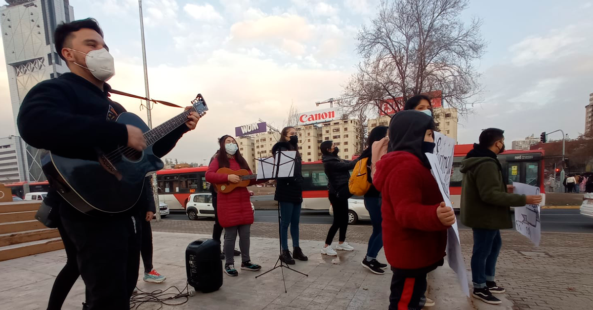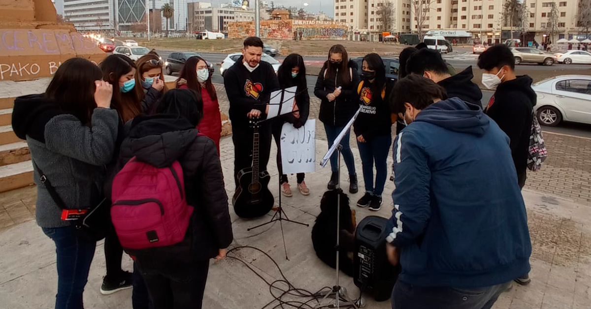 Pero no nos quedamos ahí. Seguimos caminando por Alameda hasta llegar a Plaza Italia, lugar de mucho tránsito y más un día sábado por la tarde. Encontramos un espacio, instalamos algunos instrumentos, aplicamos las lindas voces que papito nos regaló y nos pusimos a cantar algunas alabanzas.