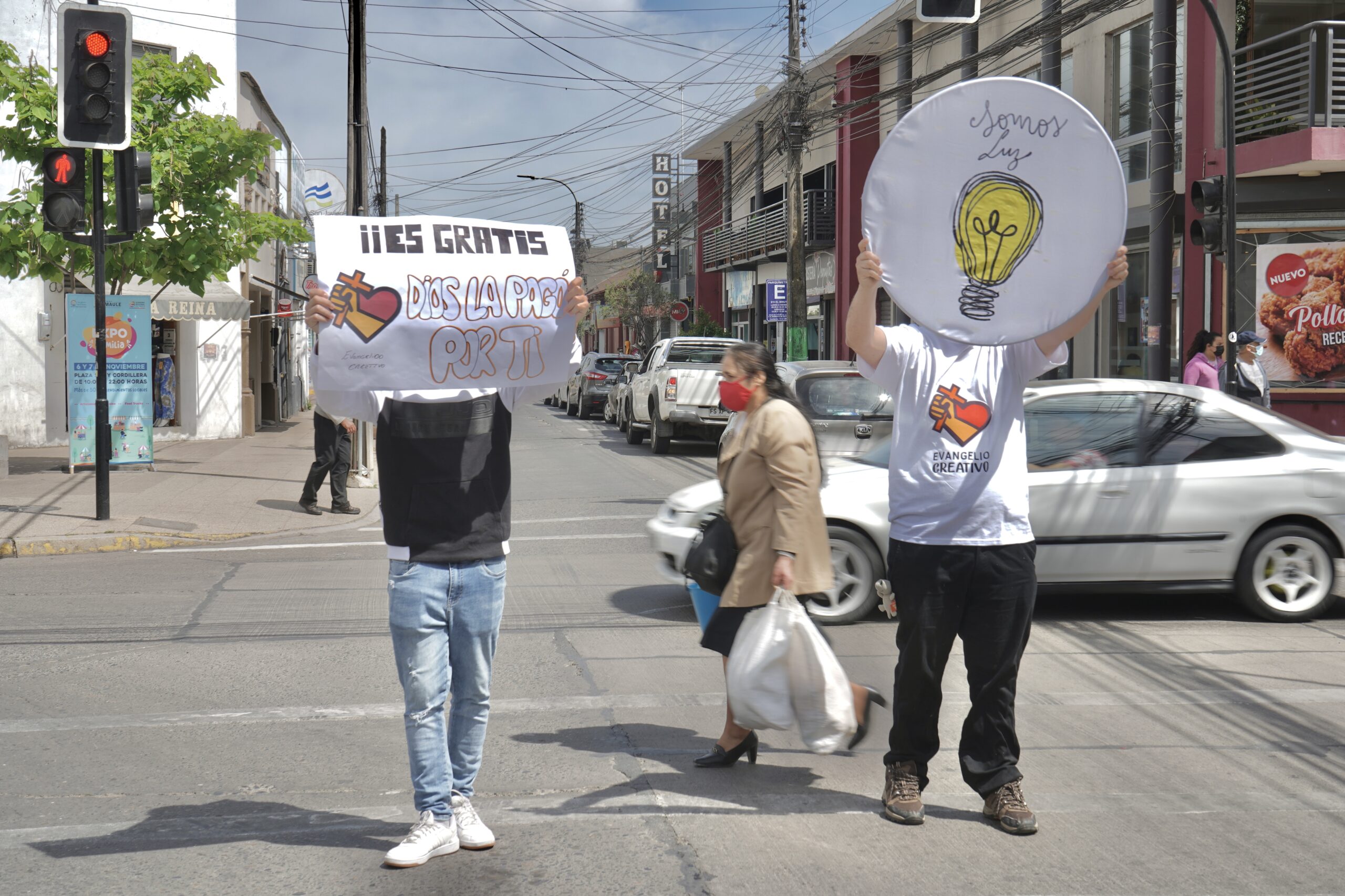 Con la intención de hablar de las maravillas de Dios a través de un sencillo gesto, estuvimos entregando en las calles y semáforos distintos tratados, dulces y aguas minerales, y aunque muchas personas buscaban sus billeteras para pagarnos nosotros les mostrábamos un cartel que decía “Es gratis, Dios la pagó por ti”, un simple mensaje que refleja lo que Jesús dio por nosotros, ¡vida y Salvación!.